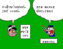 Tensai Bakabon sort au printemps 88. Pour ceux qui ne connaîtraient pas cette série relativement ancienne, disons pour caricaturer un peu qu’il s’agit d’un genre de « Simpsons à la japonaise ». L’ambiance est y résolument humoristique pour ne pas dire déjantée. Le jeu est très fidèle aux traits originaux qu’on reconnaît au premier coup d’œil. Son déroulement fait un peu penser à "Anmitsu Hime" décrit plus haut. Là encore, le japonais est indispensable sous peine d’être vite bloqué et/ou de passer à côté des moments amusants. Réalisation manga-cartoon honnête mais jeu loin d’être inoubliable.
