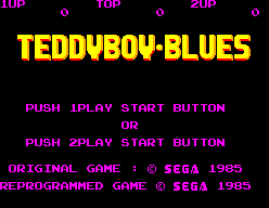 Enfin, concluons ce petit tour d’horizon avec cette parenthèse frôlant le hors sujet. Même s’il n’est tiré ni d’un manga, ni d’un animé, Teddy Boy Blues est un jeu à licence qui emprunte un élément de la culture japonaise, en l’occurrence la J-Pop ! En 1985, le single éponyme de Yohko Ishino brille dans les classements. SEGA achète les droits pour en faire un petit jeu de plates-formes en arcade, incluant la bande son, histoire de surfer sur le succès du tube. Le soft fait partie du lancement de la Mark III en fin d’année aux côtés de Hang-On. Le jeu est sympathique mais on ne peut plus basique, il a naturellement été privé de sa mélodie phare lors de sa sortie chez nous !