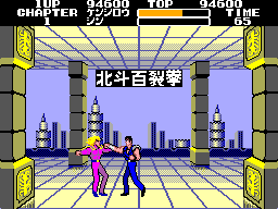 A la vue de la violence crue de Ken le Survivant, comme on l’appelle chez nous, SEGA a logiquement choisi de produire un jeu de baston. Pas mal inspiré d’une référence de l’époque, SpartanX / Kung-Fu Master, il s’agit d’un beat’em all franchement réussi qui retranscrit bien l’univers post apocalyptique de la série. Le niveau technique est en plus vraiment relevé avec, choses rares pour l’époque, des scrollings différentiels et de gros sprites lors des confrontations avec les boss. On note qu’à cette occasion, le combat se fait dans une aire fermée, en un contre un et avec une barre de vie pour chaque personnage. Ce n’était vraiment pas courant à l’époque, une sorte de Street Fighter avant l’heure !