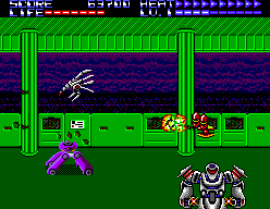 L’inspiration du titre n’est pas sans rappeler « Terminator », vous évoluez dans un monde chaotique où les machines ont pris le contrôle. A noter le louable effort de scénarisation fait par les programmeurs qui ont intégré pas mal de textes et d’images plus ou moins animées avant et après chaque scène. Malheureusement, les caractères défilent si vite qu’ils ne vous laissent même pas le temps de lire l’histoire (!).
