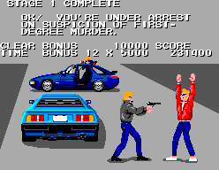 Pourquoi tant de haine ? Parce qu’il est désolant de constater qu’un concept magique car très novateur à l’époque en arcade a été ruiné sur notre console favorite, principalement à cause d’une réalisation si austère qu’elle en entache le fun et le gameplay. Certains pourront rétorquer à juste titre qu’il existe un gouffre technique entre la borne et la Master. Soit, mais c’était le cas aussi pour OutRun par exemple, qui a démontré qu’avec du talent et de l’ingéniosité, on pouvait s’éclater sur un version 8-bits en conservant l’esprit de l’œuvre originale. Ici, les graphismes sont ternes, l’animation pauvre (sur une partie réduite de l’écran), les contrôles rigides et la partie sonore pitoyable même pour un Z80 (rappelons qu’une autre version 8-bits, celle de la Famicom, comporte des musiques de qualité et des voix digitalisées). Même le «bip » de votre micro-ondes fera mieux que les bruitages censés simuler la sirène ou les crissements de pneus!