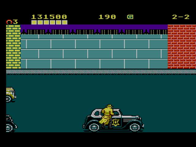 _ la poursuite en voiture. Comme le précédent, mais les ennemis et Dick sont en voiture.