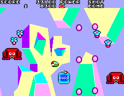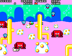 Fantasy Zone est aujourd’hui l’un des piliers du sous-genre « Cute’em up », ces jeux de tir spatiaux à l’ambiance mignonne voire naïve assumée, au côté de titres comme Twinbee ou Parodius. Ce n’est pas pour rien si son petit vaisseau bipède « Opa-Opa » a frôlé le statut de mascotte chez SEGA à l’époque. Sorti en Arcade début 1986 et aussitôt adapté sur SegaMark III au mois de juin, il engendrera cette suite l’année suivante, toujours sur la même console. Il est à noter que ce jeu a également connu une distribution extrêmement limitée en arcade, hébergé par la carte System-E, basée sur le hardware peu puissant de la Mark III.