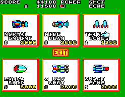 Tous les ingrédients qui ont fait le succès et le charme du jeu original sont repris, à commencer par le système de collecte de pièces et de billets, vous permettant ensuite de faire évoluer votre vaisseau en achetant des options dans des boutiques. La grande nouveauté réside dans l’instauration d’un système de zones. Le joueur doit faire le ménage et basculer dans chacune d’entre elles pour pouvoir avoir accès au boss. Un système discutable pour certains, mais qui a pour but de rompre la linéarité des niveaux.