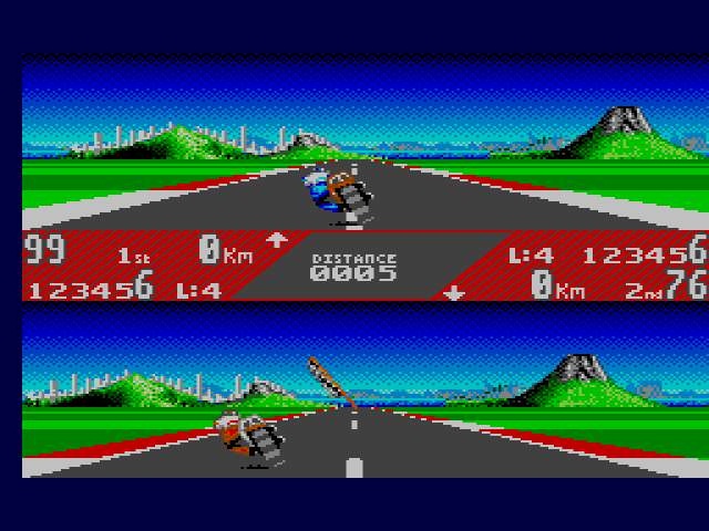 Deuxième récrimination : le son. La bande-son est une torture, que ce soit au niveau des bruitages ou de la musique. En fait durant les courses, vous n'entendrez que les bruitages, avec aucune possibilité de les couper. Franchement, Hang-on était plus plaisant ( pas de musique, mais des bruitage tolérables), et je ne parle même pas des musiques bien pêchues de Road Rash.