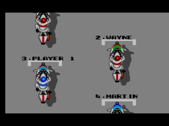 Bon, je prend le départ. Je double quelques concurrents et prend mal un virage : ma moto tombe. Mon pilote se relève, je tente de me remettre dans la course et ... plus de carburant ??? C'est quoi cette arnaque ? Il n'y a aucune jauge et j'ai juste fait une chute ! Oh, je commence à l'aimer ce jeu, moi !