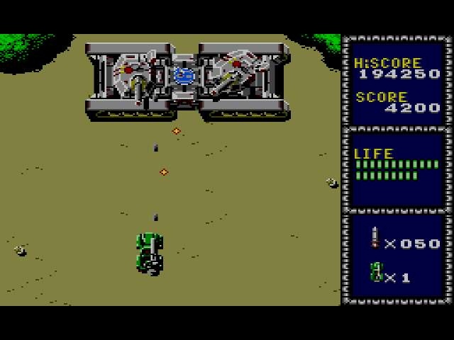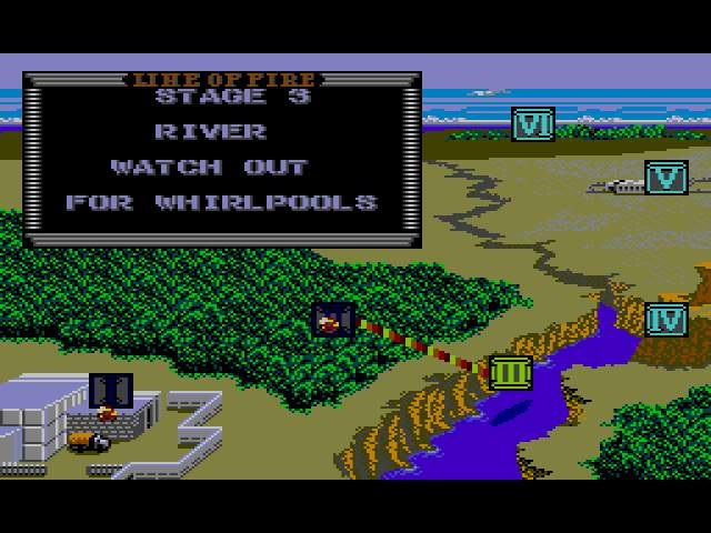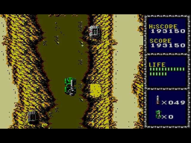 J'ai lancé le jeu avec la manette au hasard, pensant que le pistolet était nécessaire. Tiens, non : on dirige une jeep. Machinalement, je commence à mitrailler au bout 1 et tire des missiles. WTF ? Ok, les tirs simples sont avec le bouton 2. Je constate au passage que les missiles zigzaguent et ne touchent aucun ennemi : ça m'a l'air très utile...