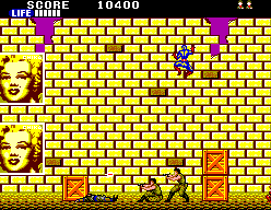 Tout d’abord, même si le programme suit fidèlement le déroulement du jeu original, quelques menues modifications ont été apportées. La plus notable concerne l’ajout d’une barre de vie au héros qui ne meurt plus au moindre contact d’ennemi ou de projectile. Le facteur stress s’en trouve allégé mais l’aventure conserve grosso modo le même niveau de difficulté. Les niveaux et les boss se reconnaissent aisément, dans une ambiance très japonaise qui a la bonne idée de combiner tradition (surikens, samurai, Mont Fuji) et modernité (décors urbains, armes à feu, hélico). La magie ninja a bien entendu été conservée, mais autre petite différence, pour pouvoir l’utiliser, il faudra d'abord la gagner dans les bonus stages en « vue subjective », bien convertis soit dit en passant. Vous ne débutez donc pas chaque vie avec un « jocker » en poche d’office.