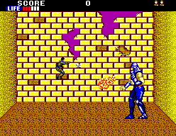 Un jeu génial en arcade devenu un classique sur SMS ne peut constituer une déception. Mais alors pourquoi la question énoncée plus haut, sous forme de réserve ? Tout simplement parce que les années affûtent notre sens critique : cette adaptation aurait pu et du être meilleure ! Trop d’éléments laissent penser que SEGA a voulu sortir rapidement le jeu sur sa 8-bit, dont la fin de carrière approchait à grands pas au Japon. Les graphismes sont bons mais en dessous des productions comparables de la même époque (cf. Kenseiden par exemple). On peut regretter des sprites à la taille un peu juste et relativement rigides, à l’image des contrôles d’ailleurs. Les séquences de magie, pourtant « marque de fabrique » pour Shinobi, perdent au change quand on fait là encore quelques comparaisons (cf. Golden Axe). Beaucoup plus regrettable par contre, alors qu’en arcade l’ambiance sonore était riche, quasiment la même musique tourne désespérément en boucle tout au long du jeu. Enfin, on touche à l’inacceptable quand on réalise qu’aucune fin, même sous la forme de deux lignes de texte, n’a été prévue. Après avoir sué sang et eau pour vaincre le dernier boss, vous serez gratifiés par le lapidaire et indigne « Game Over ». L’un dans l’autre, SEGA s’est contenté d’assurer, sans plus, ne serait-ce que dans le choix de la taille mémoire de la cartouche : 2 petits mégas (soit 256 Ko) quand un After Burner, pour le coup vraiment raté, en affiche 4.