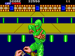 Encore un énorme succès d’arcade pour SEGA en 1987 avec ce jeu d’action / plates-formes qui contribua grandement à populariser les ninjas dans le jeu vidéo. L’adaptation sur Master System, extrêmement attendue, est sortie au printemps 88 et se place depuis aux côtés des grands classiques de la machine comme Alex Kidd ou Wonderboy. La version arcade, véritable régal, modèle du genre, soignée dans les moindres détails, fait figure de référence encore aujourd’hui. Peut-on objectivement en dire autant de l’opus SMS ?
