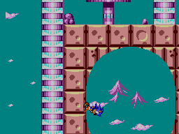 La maniabilité est sans faille, vous ne pourrez vous en prendre qu’à vous en cas de faux pas ! Beaucoup de jeux 8-bit sont relativement stressants par nature : jouabilité rigide, marge d’erreur extrêmement réduite, difficulté exagérée. Avec ce Sonic 2, on a l’impression que tout coule de source, que tout se déroule avec brio, et on prend un très grand plaisir à évoluer dans les niveaux. On peut d’ailleurs regretter qu’ils soient relativement courts. La durée de vie du soft n’est d’ailleurs pas énorme, mais si vous souhaitez voir la véritable fin, il faudra persévérer un peu pour récolter les émeraudes cachées.