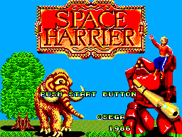 Space Harrier sort au Japon sur Mark III fin 86 et présente la particularité de tourner sur la première cartouche 2 Mégas de la console (256 Ko, une très grosse taille pour l’époque toutes consoles confondues). Le résultat est fatalement douloureux si on prend pour étalon la version arcade, mais il ne peut que susciter l’admiration au regard des possibilités de la petite 8-bits.