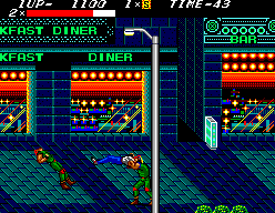 Qui dit Streets of Rage dit aussi musiques cultes de Yuzo Koshiro. Là encore, la SMS nous surprend en parvenant à les restituer de fort belle manière, sans les dénaturer. Comme Yuzo Koshiro a travaillé par ailleurs sur des musiques SMS (Sonic 1, Batman Returns,…) c’est à se demander s’il n’a pas ici assuré lui-même la conversion, bien qu’il ne soit mentionné que pour le copyright !