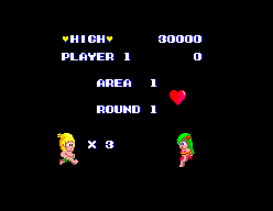 Simplicité et fraîcheur : ce sont les deux adjectifs qui caractérisent le mieux ces 128 petit Ko de bonheur. Vous dirigez votre personnage à la recherche de sa bien aimée, en traversant des niveaux au design délicieusement naïf, toujours en scrolling horizontal de la gauche vers la droite. Comme l’action s’avère être assez rapide, ce scrolling unique (sans possibilité de revenir en arrière) donne une impression assez fun de « fuite en avant » qui fait oublier les restrictions qu’il impose. Graphiquement, on se situe dans la très bonne moyenne de la Master. Les mélodies sont elles peu nombreuses mais très sympathiques et joyeuses, c’est l’essentiel !