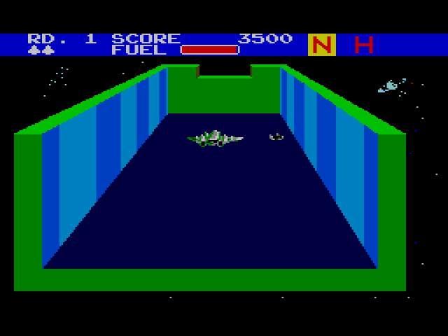 Voici la forteresse de combat mentionné dans le résumé. En fait, il s'agit d'un couloir tout droit avec des ennemis, des bidons de carburant ( à détruire pour remplir un peu votre réservoir) et des sas se rétrécissant, vous forçant à bien vous positionner pour éviter de vous crasher. L'effet 3D est ici plus visible que dans la première partie.