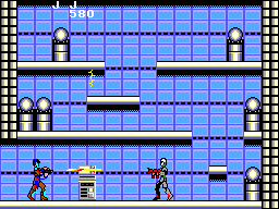 Avant dernier jeu sorti par SEGA avant l’abandon de la Master System au Japon, Chouon Senshi Borgman fait son apparition en toute fin d’année 88. Tiré d’un animé (pas de mangas pour cette fois), il vous fait prendre le contrôle d’un androïde devant nettoyer une base de tous ses aliens. Il faut emprunter judicieusement des ascenseurs pour faire le ménage dans les différents niveaux, tout en gardant un œil attentif sur votre radar, destiné à anticiper les mauvaises rencontres. Le concept se rapproche grandement du premier Zillion. La comparaison s’arrête là: même si les graphismes sont plus flatteurs, l’action est beaucoup trop répétitive et le titre laisse un sentiment assez fade.