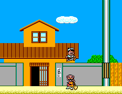 Tensai Bakabon sort au printemps 88. Pour ceux qui ne connaîtraient pas cette série relativement ancienne, disons pour caricaturer un peu qu’il s’agit d’un genre de « Simpsons à la japonaise ». L’ambiance est y résolument humoristique pour ne pas dire déjantée. Le jeu est très fidèle aux traits originaux qu’on reconnaît au premier coup d’œil. Son déroulement fait un peu penser à "Anmitsu Hime" décrit plus haut. Là encore, le japonais est indispensable sous peine d’être vite bloqué et/ou de passer à côté des moments amusants. Réalisation manga-cartoon honnête mais jeu loin d’être inoubliable.