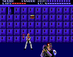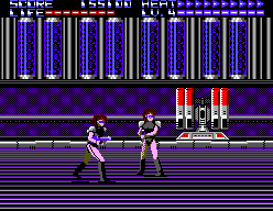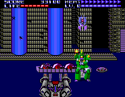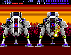 Voilà ce que l’ont pourrait qualifier d’ « Opération Wolf » futuriste, du tir sur cible au déroulement automatique, purement arcade, qui ne mettra pas vos neurones à rude épreuve. Développé par Sanritsu/Sims pour le compte de SEGA, ce jeu existe en deux versions, l’une tire partie du Light Phaser pour vous offrir du vrai gun shooting, l’autre, strictement identique dans sa forme et son déroulement, se joue plus classiquement au pad. Dans ce dernier cas, le premier bouton vous sert à faire feu, le second module la vitesse du curseur de tir.