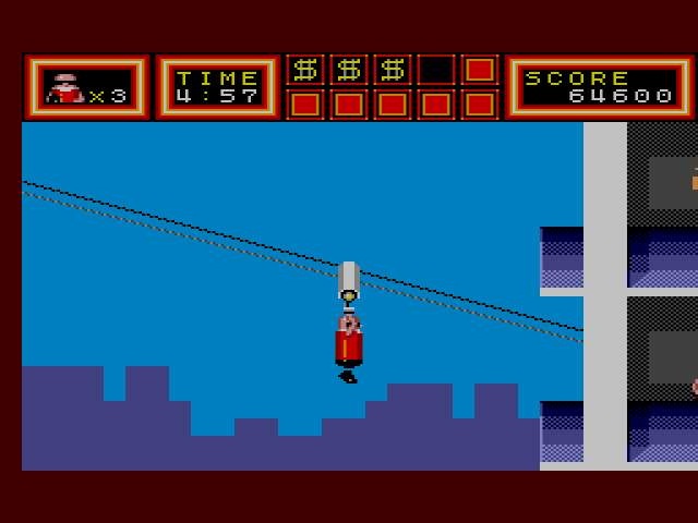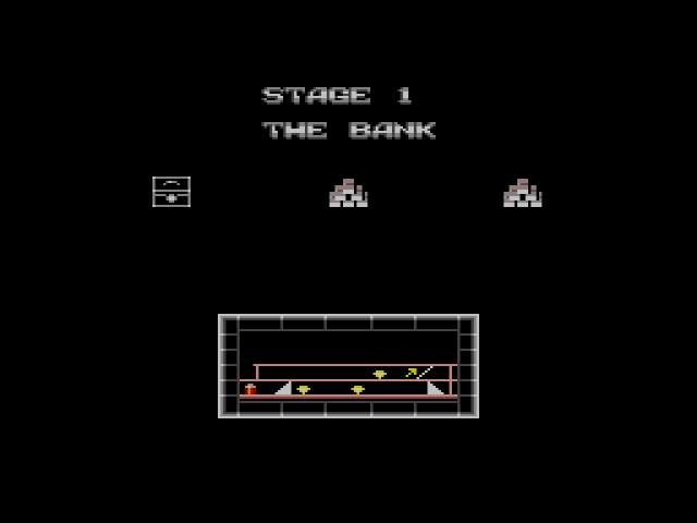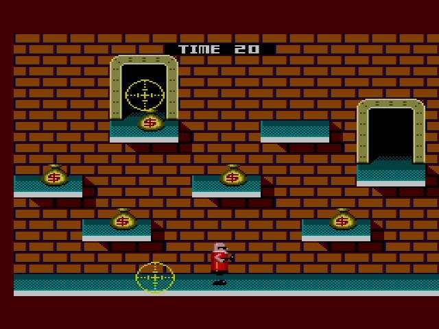 A intervalles réguliers, vous aurez également un niveau bonus. Le but de ces niveaux est de ramasser tous les sacs d'argent en un temps limite et sans être rattrapé par les réticules de visée. Afin de les éviter, vous pourrez vous cacher dans l'encadrement de portes. Si vous échouez ( rattrapé ou manque de temps), pas de point, mais le jackpot si vous réussissez.