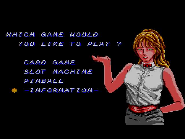 Le jeu comporte 3 jeux de cartes ( baccarat, poker et blackjack ), une machine à sous et un flipper.