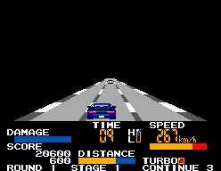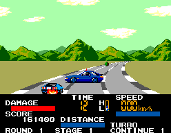 Pourquoi tant de haine ? Parce qu’il est désolant de constater qu’un concept magique car très novateur à l’époque en arcade a été ruiné sur notre console favorite, principalement à cause d’une réalisation si austère qu’elle en entache le fun et le gameplay. Certains pourront rétorquer à juste titre qu’il existe un gouffre technique entre la borne et la Master. Soit, mais c’était le cas aussi pour OutRun par exemple, qui a démontré qu’avec du talent et de l’ingéniosité, on pouvait s’éclater sur un version 8-bits en conservant l’esprit de l’œuvre originale. Ici, les graphismes sont ternes, l’animation pauvre (sur une partie réduite de l’écran), les contrôles rigides et la partie sonore pitoyable même pour un Z80 (rappelons qu’une autre version 8-bits, celle de la Famicom, comporte des musiques de qualité et des voix digitalisées). Même le «bip » de votre micro-ondes fera mieux que les bruitages censés simuler la sirène ou les crissements de pneus!