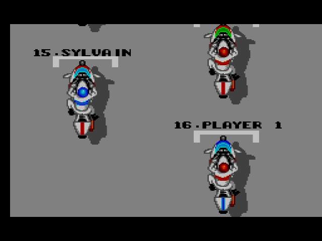 Bon, je prend le départ. Je double quelques concurrents et prend mal un virage : ma moto tombe. Mon pilote se relève, je tente de me remettre dans la course et ... plus de carburant ??? C'est quoi cette arnaque ? Il n'y a aucune jauge et j'ai juste fait une chute ! Oh, je commence à l'aimer ce jeu, moi !