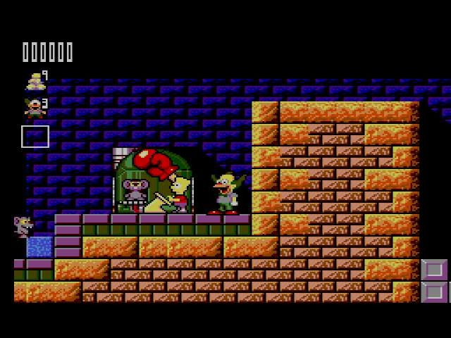 Les rats sortiront par divers trous dans le mur. Pour les exterminer, chaque pièce dispose d'une machine opérée par un personnage de la série ( dans le premier "monde", c'est Bart, dans le deuxième, Homer). La tâche de Krusty consiste à diriger les rats vers le piège. Un peu comme dans Lemmings. Pour les diriger, Krusty ramassera des objets et les positionnera où il faut : un bloc bien placé fera une marche d'escalier pour que les rats avancent, ou les empêchera de tomber dans un tuyaux. Très simple au début, les niveaux se compliquent rapidement et demanderont aussi bien réflexion que rapidité. En effet vous ne pouvez porter qu'un objet à la fois, et vous devrez parfois jongler avec en l'espace de quelques secondes.