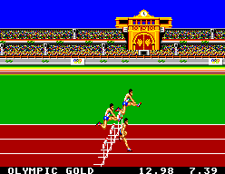 En cet été 92, théâtre des J.O. de Barcelone, la Master System accueille ce jeu multi épreuves affublé de la licence officielle du C.I.O. Sept disciplines sont au programme de cette cartouche de 256 Ko. développée par Tiertex pour le compte d’U.S. Gold: 100 mètres, saut à la perche, natation, 110 mètres haies, lancer du marteau, tir à l'arc et plongeon.