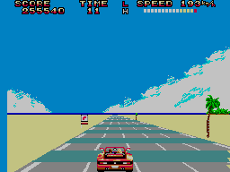 Moins difficile qu’en arcade, OutRun vous donnera cependant pas mal de fil à retordre, la marge d’erreur dans les petits (ou gros) écarts de conduite étant très limitée. Certains pourront reprocher à cette version une petite inertie dans les contrôles mais on s’y fait très rapidement. Le gros avantage du système de jeu, c’est que la durée de vie est solide. Même quand on a maîtrisé et plié le soft dans tous les sens, on y revient souvent pour une partie de quelques minutes, comme pour se « promener » sans prise de tête, en alternant les parcours et en cherchant à battre son record. La preuve que cette cartouche SMS a largement rempli son contrat !